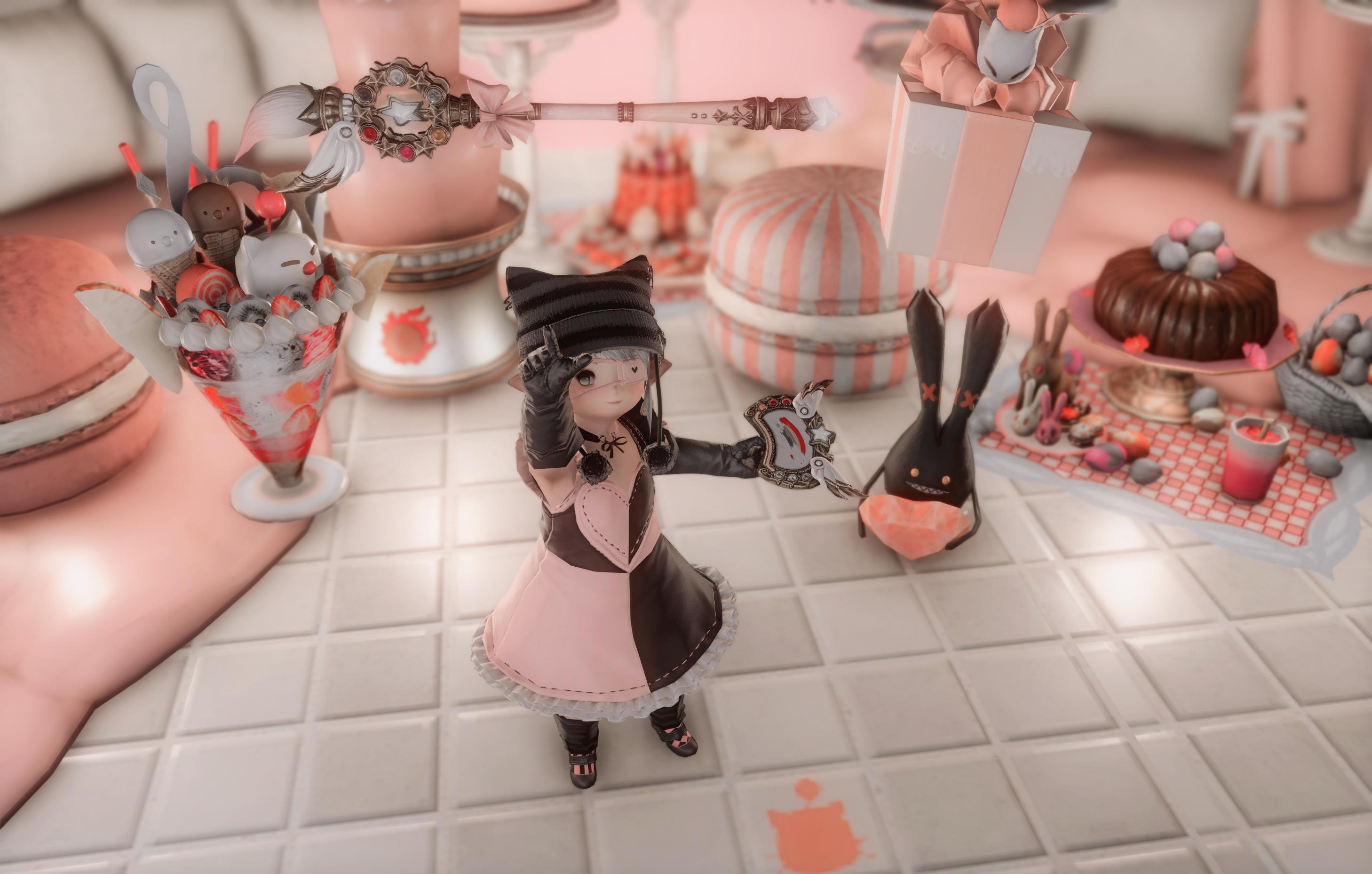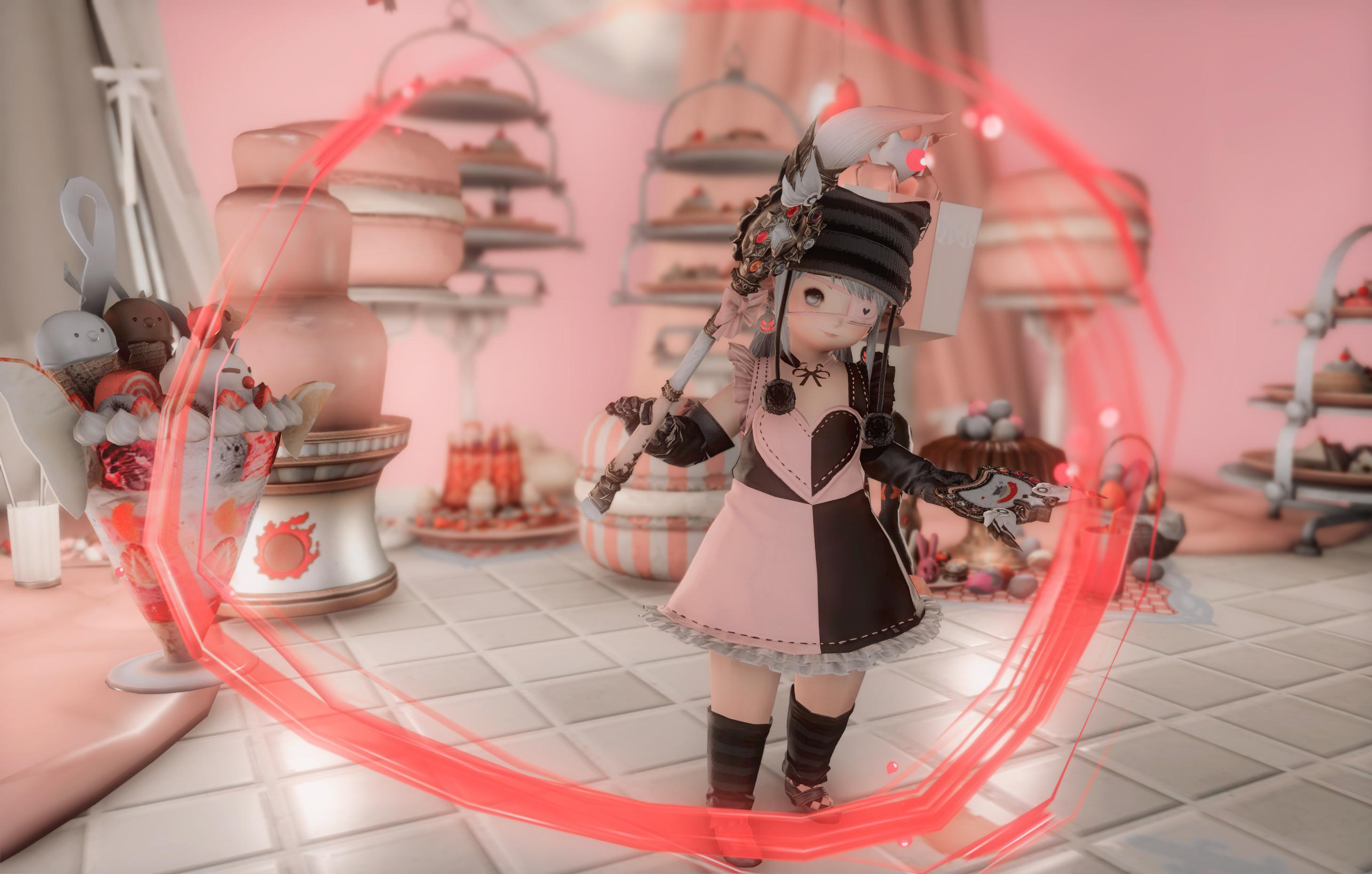 每位母肥玩家都应该拥有的另类套装的猫猫眼罩毛球帽!手是魔女套,裤子是猫小胖,衣服和鞋子都是恋人节。在板子购入画家的幻梦武器,带着礼物盒宠物去鸟区粉色系摄影棚猛猛拍照。没有人能拒绝……地雷系魔法少女!