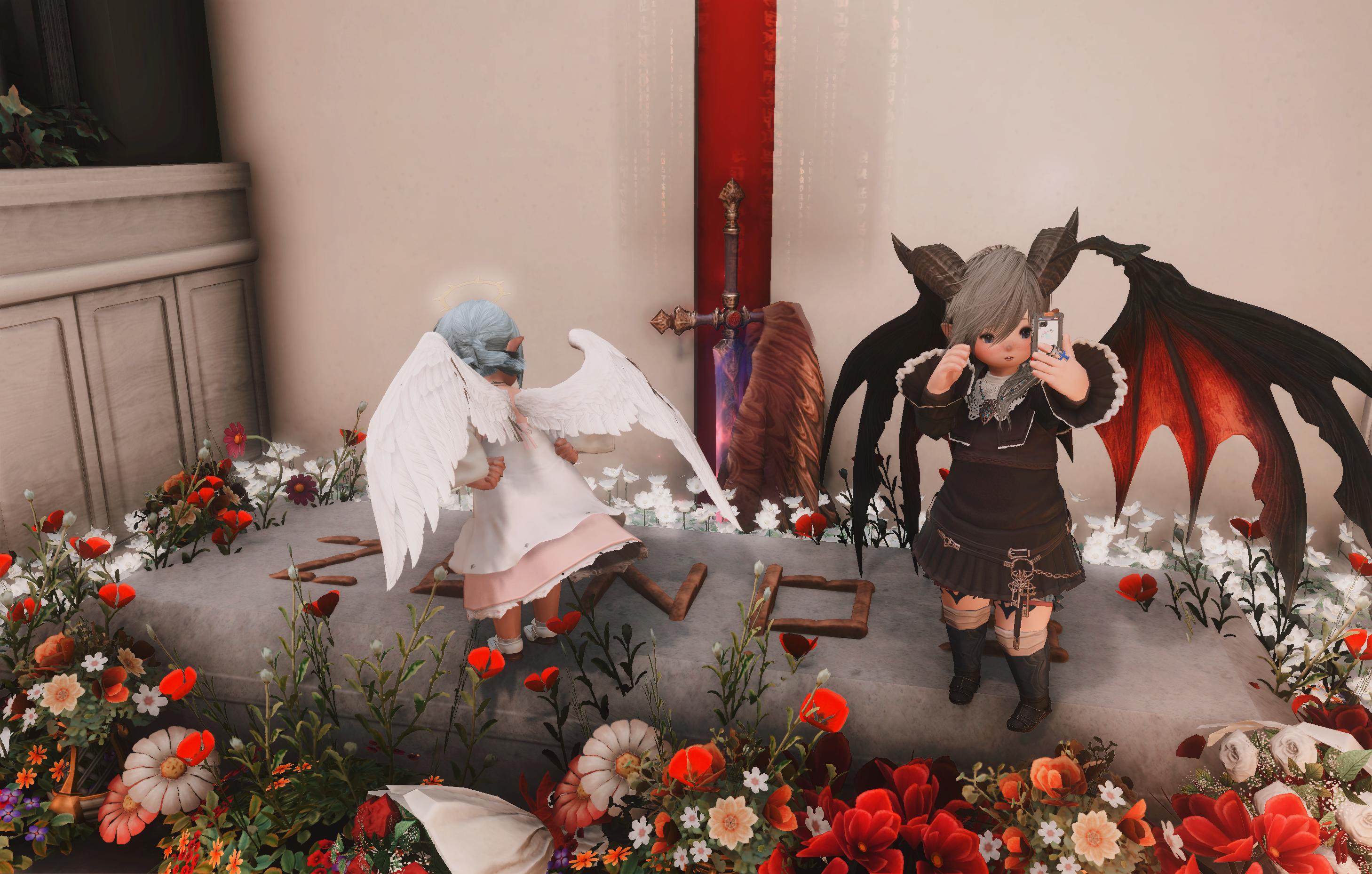 米米在 7.25 肝了一周多的月球探索,给我寄了无数好运道奖品,这张照片从坐骑到情感动作到装备甚至染剂都是由米米提供的,妈妈…… 妈妈…… 很喜欢拍一些母肥看垃圾的眼神。