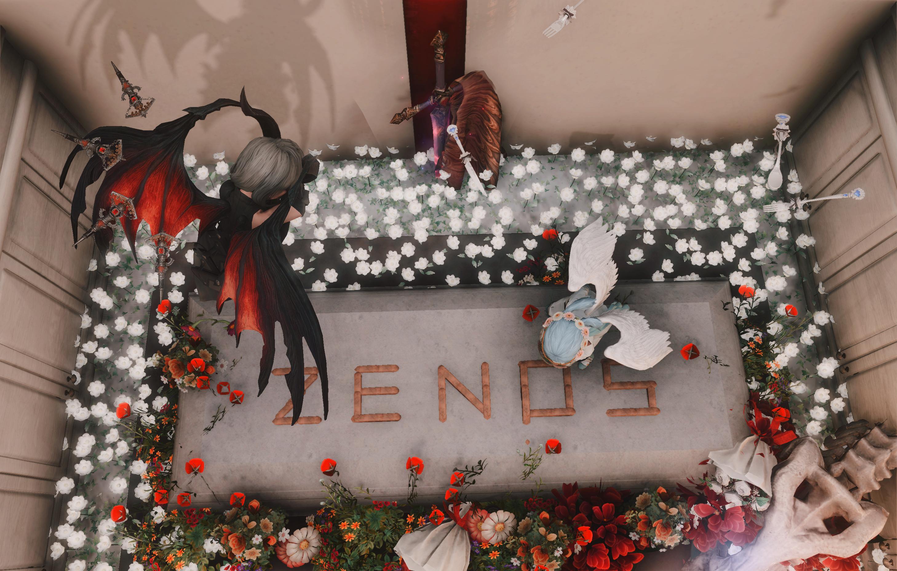 进门未睹墓碑真容先听到房屋内单曲循环播放的 4.0 基拉巴尼亚风格军歌,瞬间抬高了这个装修的含金量,原本两位母肥还在好好给老公送花扫墓,结果不知不觉就开始在老公的灵堂里拍一些神秘而缺德的纪念照。老公你就安心地去吧,我们会守护你的笑容的!