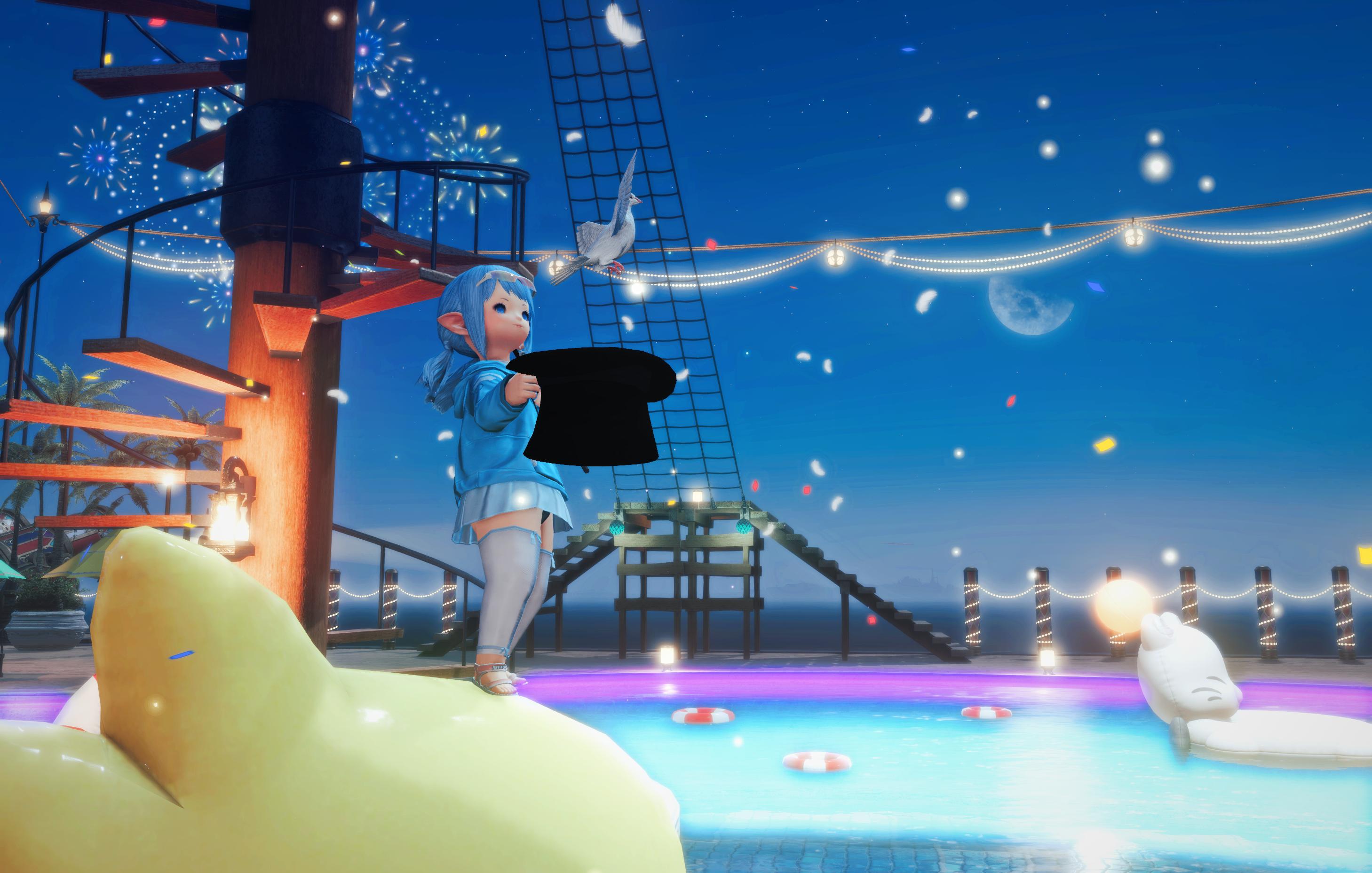 然后就这么拍到了艾欧泽亚时间的晚上,难得拍得较为成功的黄昏和夜晚全景,变魔术大概是我周年庆购入的最值的情感动作。